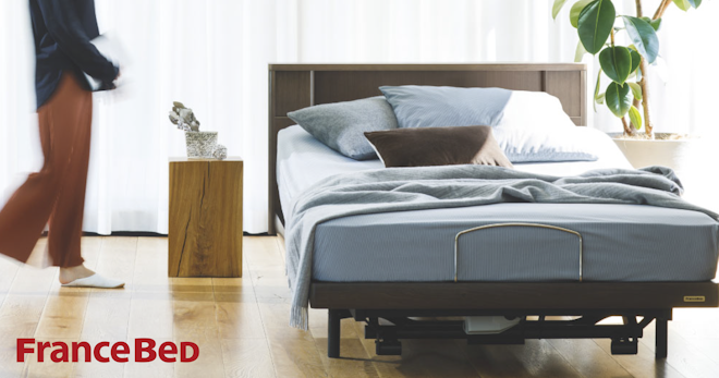 フランスベッドの電動ベッドは、機能的でありながらも、インテリアに馴染むデザインが採用されています。