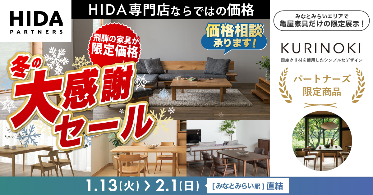 HIDAのすべてのリビング・ダイニング・デスク関連の家具を「限定特別価格」にてご提供する特別セールイベントも開催中です。お買い得商品も多数ご用意しておりますので、是非この機会に国内有名家具をご検討ください。