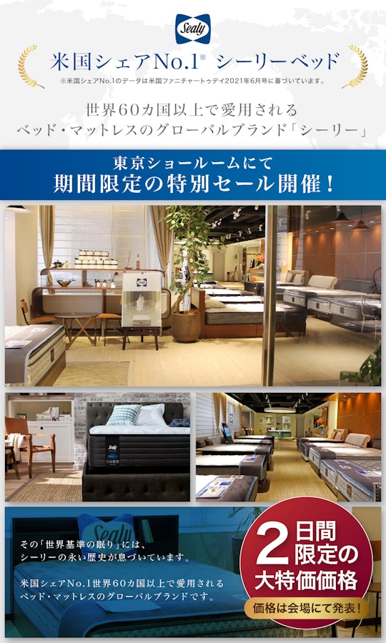 国内一流ベッドブランド、シーリーが限定企画イベントならではの大特価にてご提供!