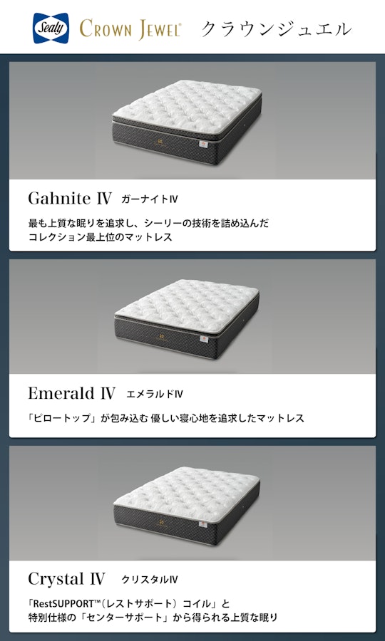 極上の眠りを実現する一流ブランドベッド「シーリー」が誇る高品質・高機能マットレス、ベッドフレーム、高品質な羽毛ふとんや寝装品、安心・安全な電動リクライニングベッドなどなど、公式カタログ・ホームページ掲載品をすべて特別イベント限定価格にてご提供!