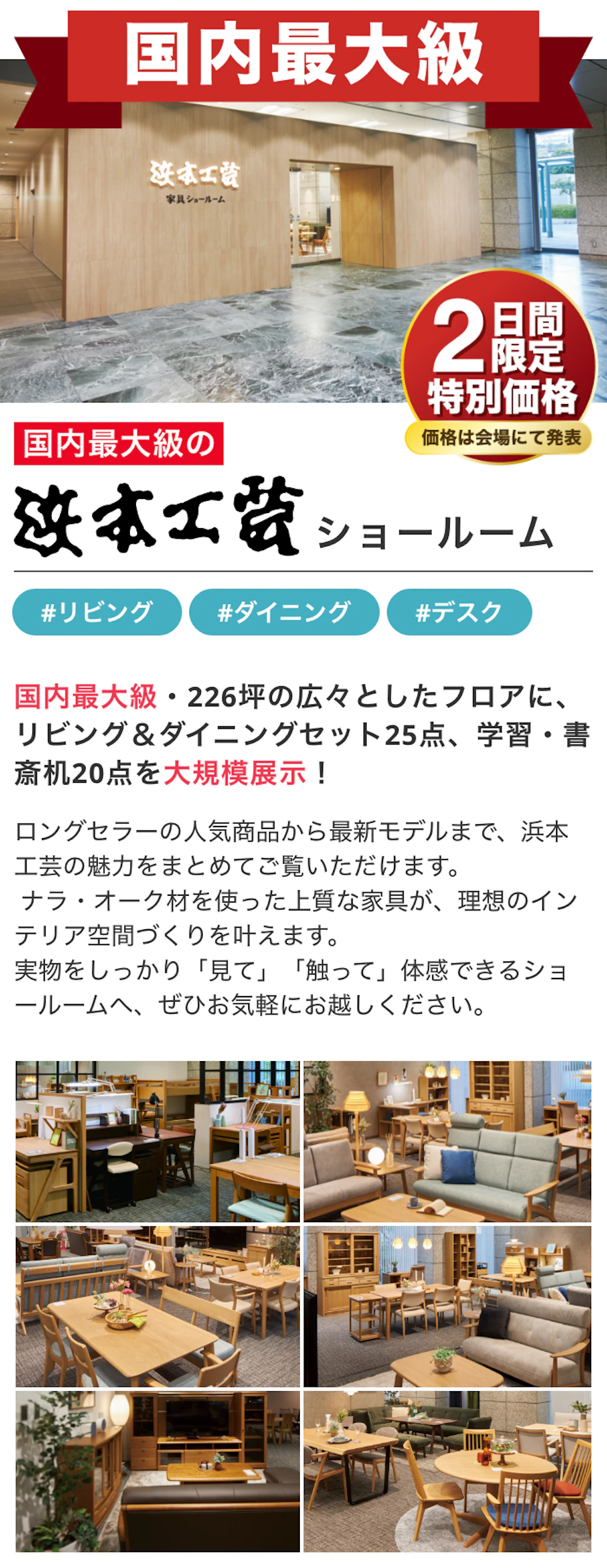 本物の家具をつくり続けている「浜本工芸」の国内最大規模の横浜ショールーム限定企画イベント!