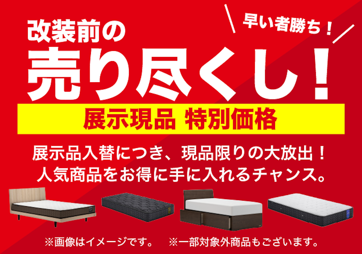 リニューアルにつき、改装前の売り尽くし展示現品を特別価格にてご提供!