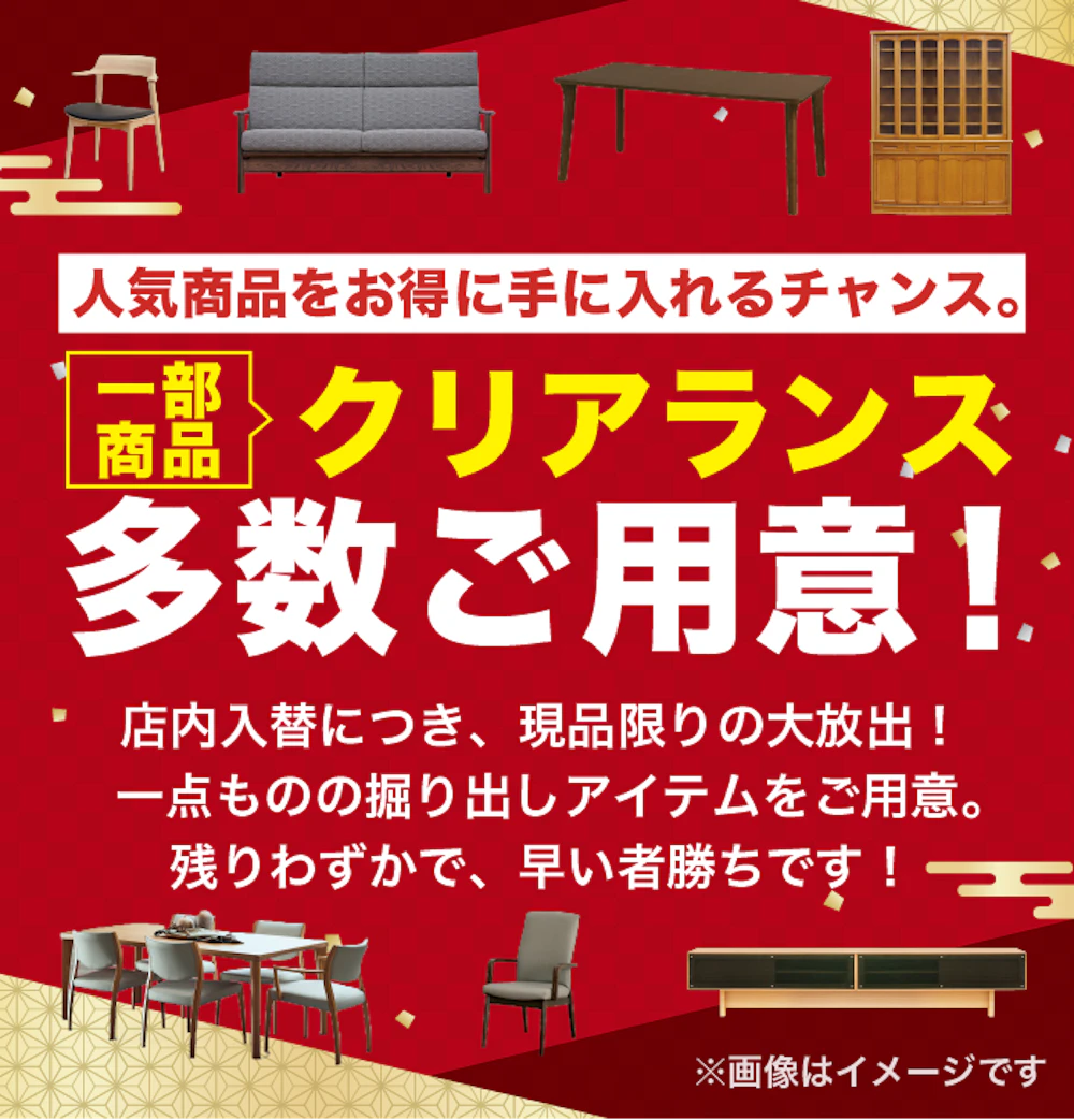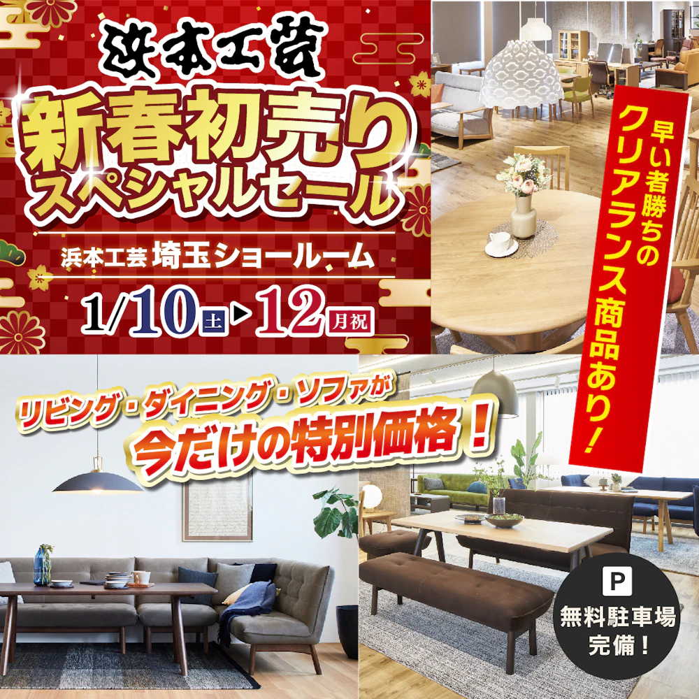 埼玉県さいたま市北区にある「浜本工芸 埼玉ショールーム」にて、創業約100年目の老舗家具屋 亀屋家具が『新春初売りスペシャルセール』を期間限定にて開催!