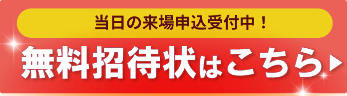 | 開催時間 | ■2/21(土):10:00~18:00(最終受付17:00) ■2/22(日):10:00~18:00(最終受付17:00) ■2/23(月祝):10:00~17:00(最終受付16:00) |