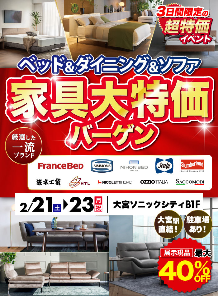 | 取扱商品 | 家具全般 ベッド・マットレス 布団・寝装品 |
