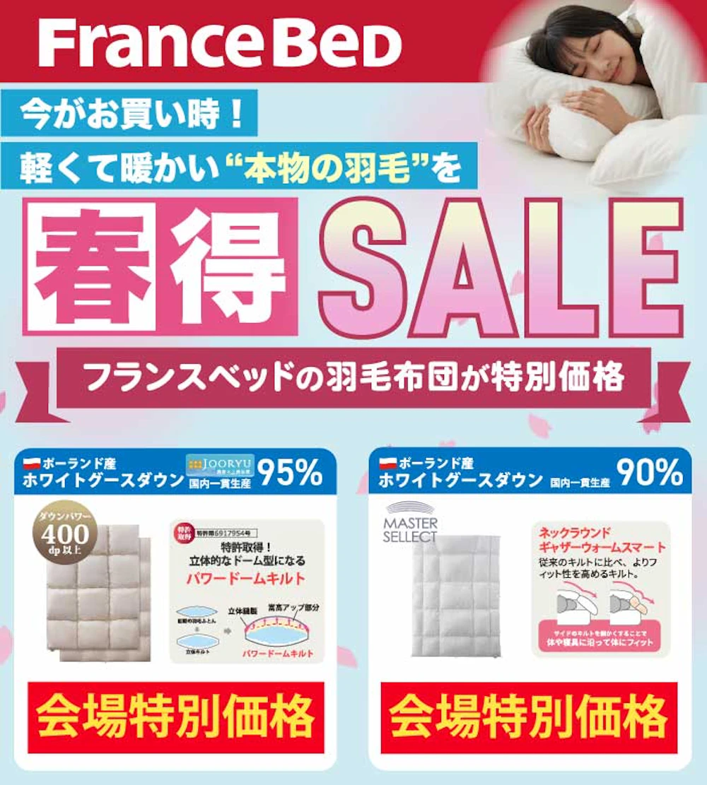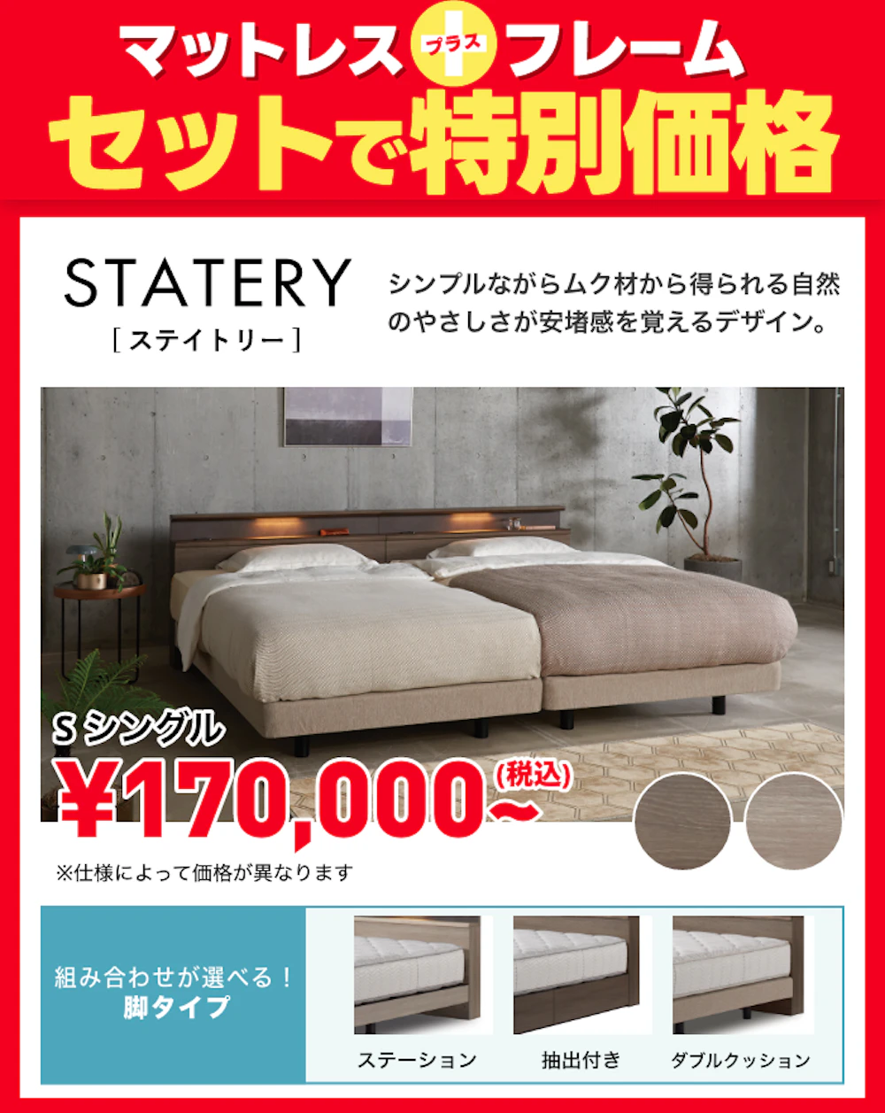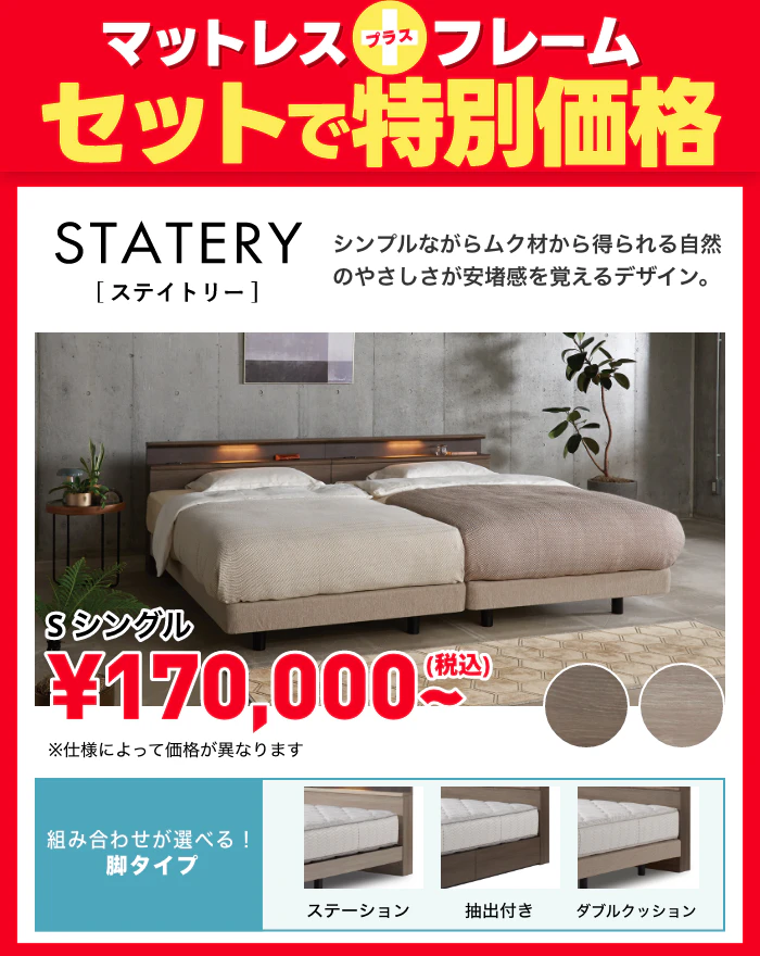 種類豊富なベッドアウトレットコーナーには、型落ち品・数量限定品・アウトレット品が勢揃い。国内外の有名ブランドベッドをお手頃価格でご提供しています。 ※特価品は対象外です。