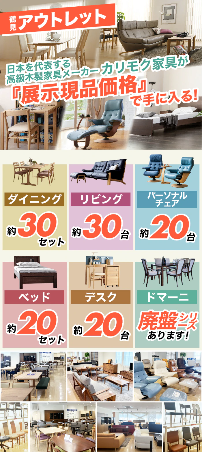 ※カリモク鶴見アウトレットでは、【カリモク60・二段ベッド・下駄箱・タンス・ドレッサー】のお取り扱いはございません。