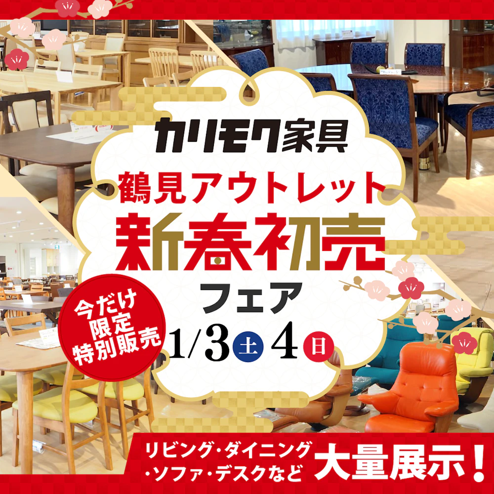 神奈川県横浜市鶴見にある「カリモク鶴見アウトレット」にて、『新春初売りフェア』を期間限定で開催致します。