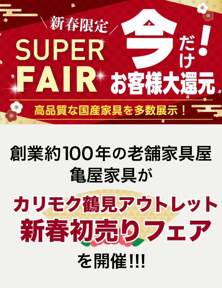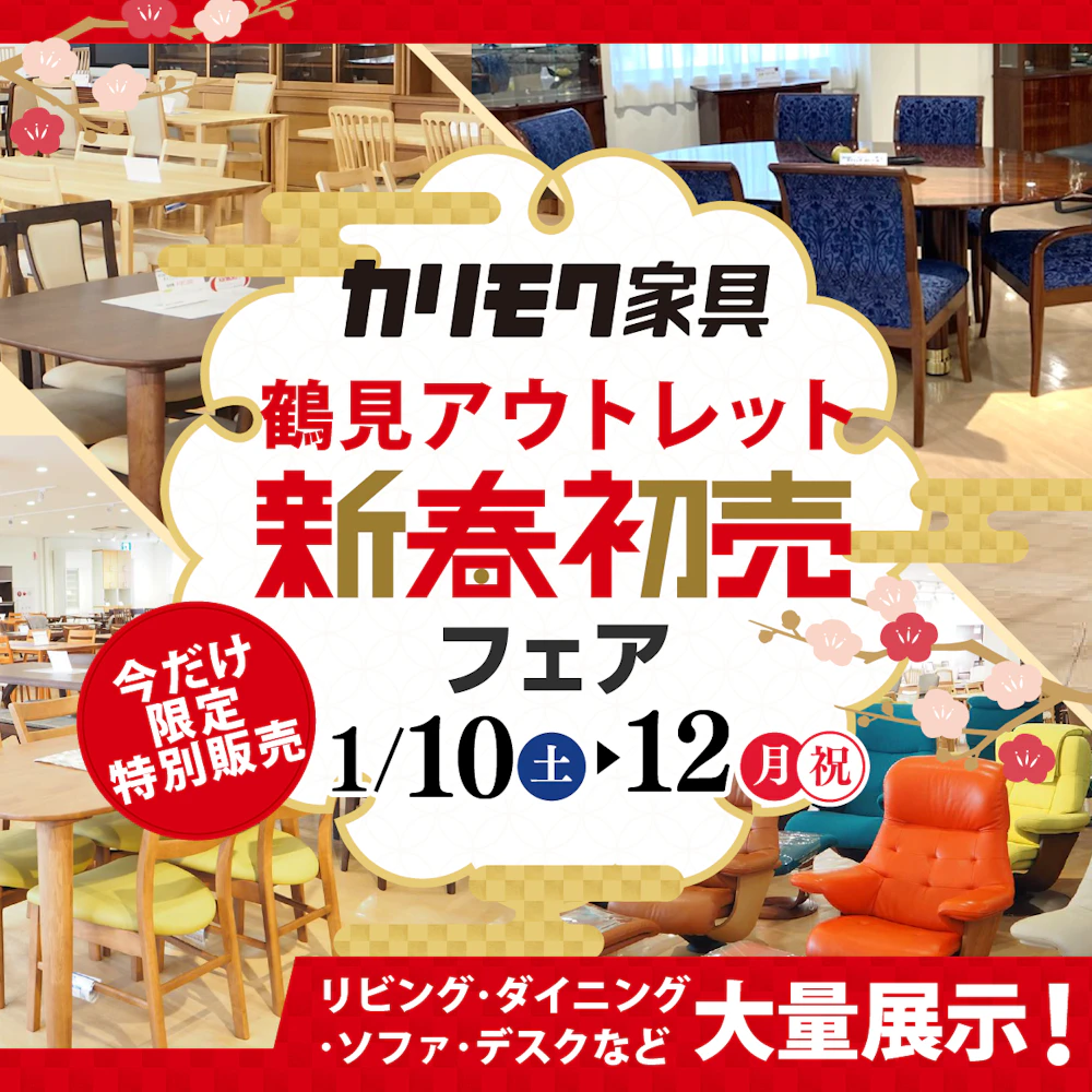 神奈川県横浜市鶴見にある「カリモク鶴見アウトレット」にて、『新春初売りフェア』を期間限定で開催致します。
