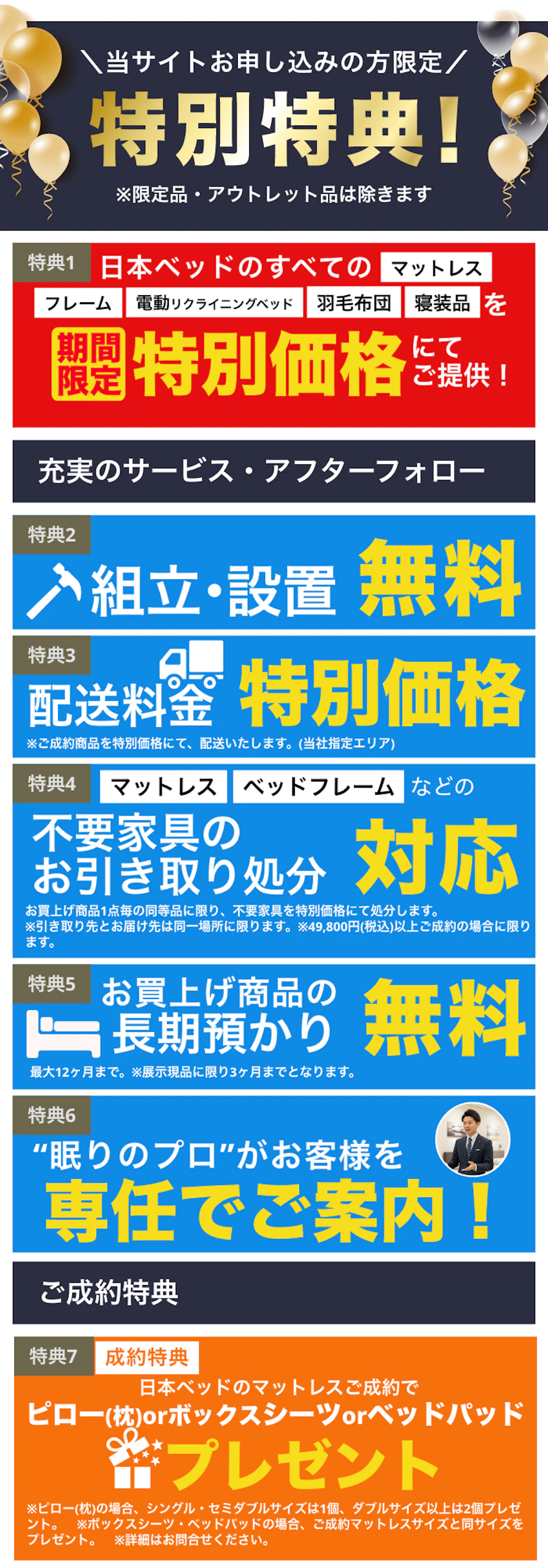 | 取扱商品 | ベッドフレーム・マットレス・寝装品 電動ベッド |