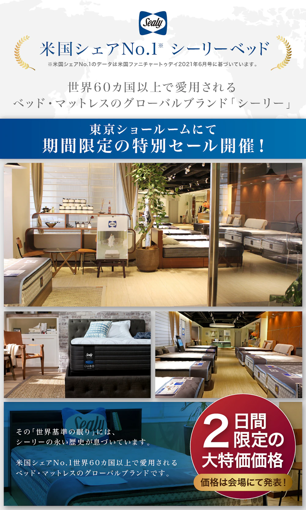| 開催場所 | Sealy Bed 東京ショールーム(青山) (〒107-0061 東京都港区北青山2-13-5 青山サンクレストビル2F) |