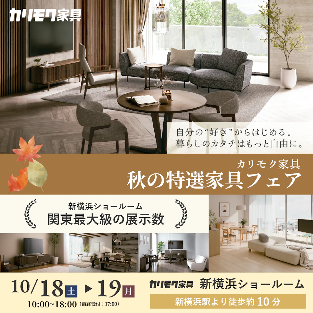 神奈川県横浜市港北区にある「カリモク家具 新横浜ショールーム」にて、『秋の特選家具フェア』を期間限定で開催致します。