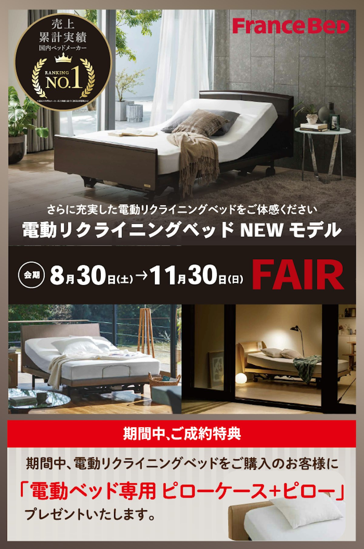 一流ベッドブランドである、フランスベッドのすべてのマットレス・ベッドフレーム・電動リクライニングベッド・羽毛布団・寝装品をイベント限定の特別価格にてご提供!