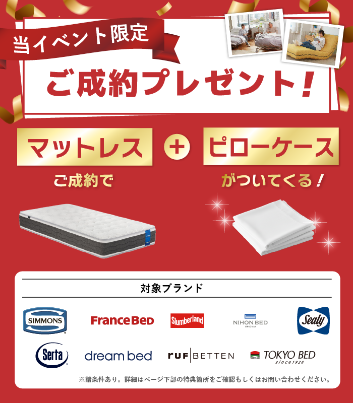 マットレスご成約で、「ピロー(枕)ケース」プレゼント!