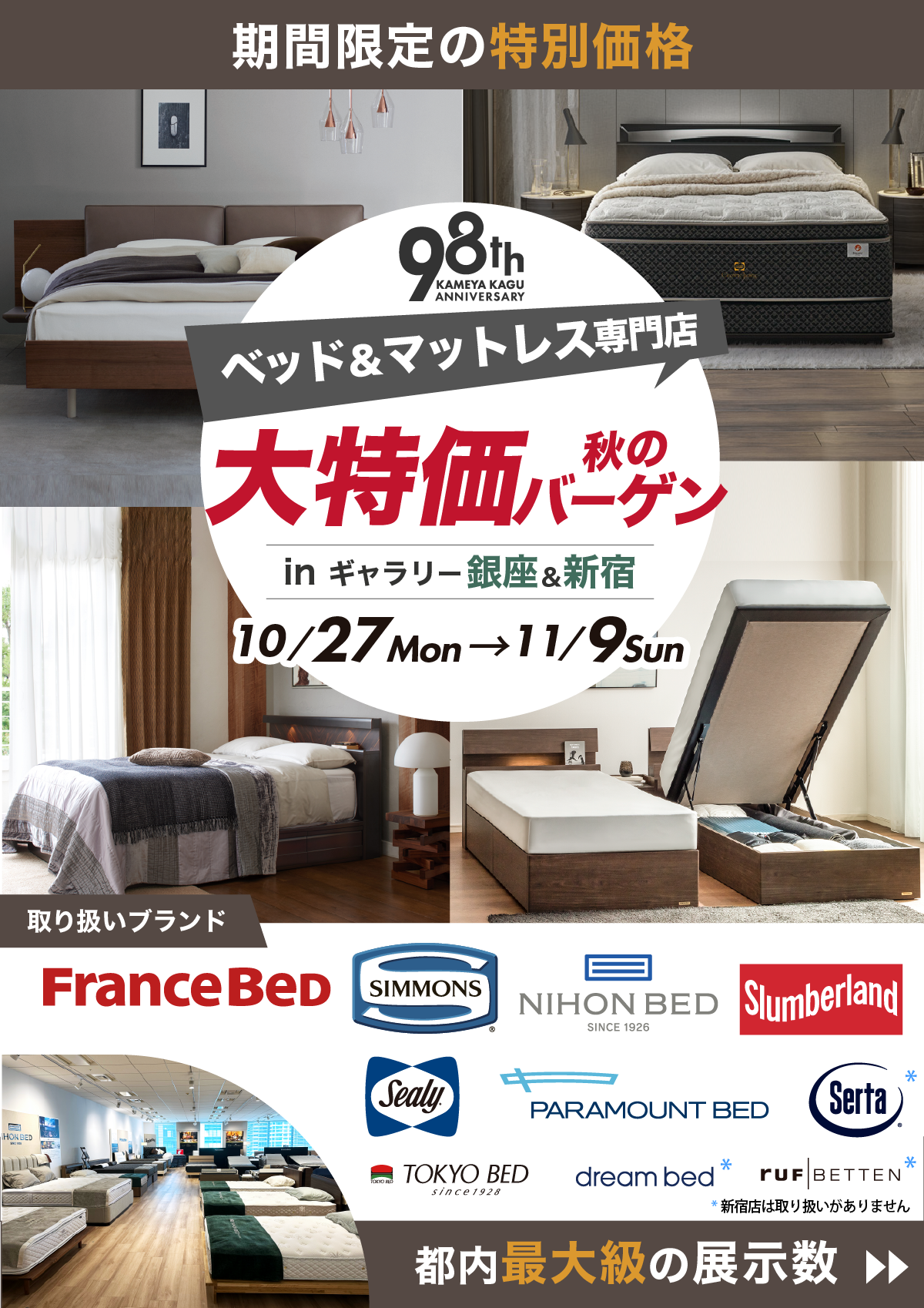 都内最大級の一流ベッドブランドのマットレス&ベッドを展示!