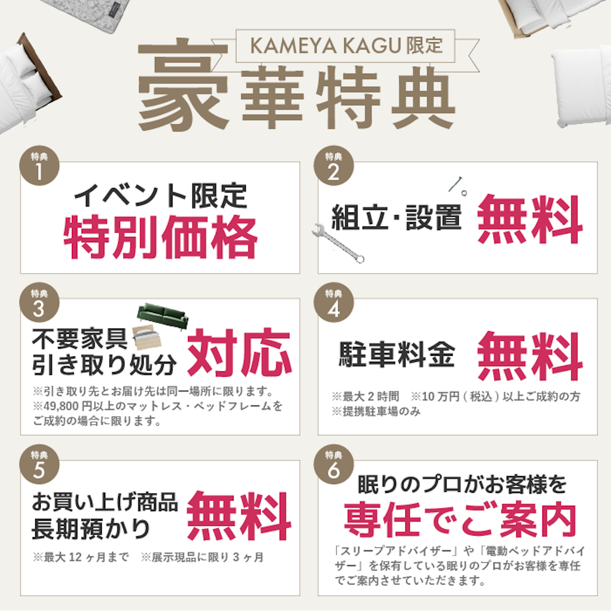 ※シングルサイズ税込10万円以上のマットレスをご成約の場合に限ります。