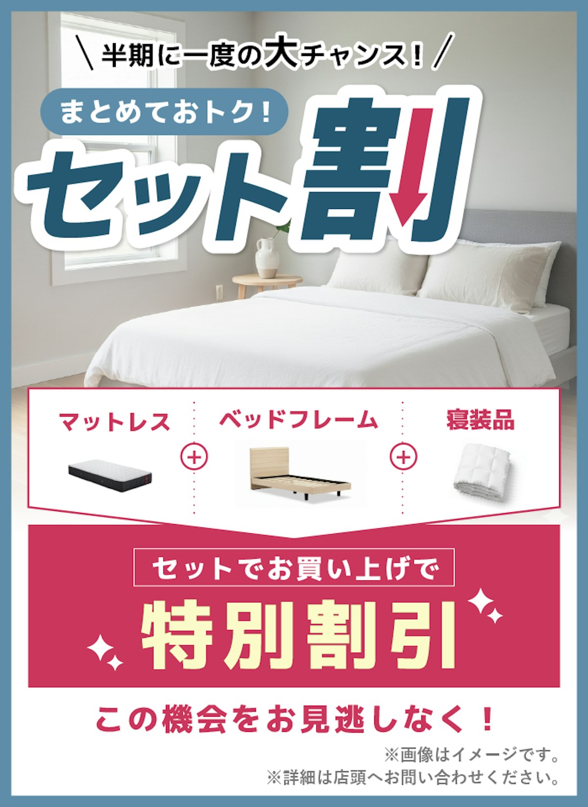 ※49,800円以上のマットレス・ベッドフレームご成約の場合に限ります。