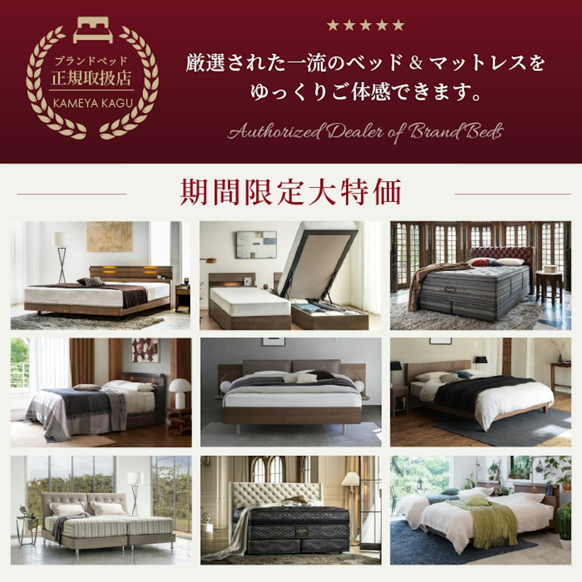 一流ベッドブランドのすべてのマットレス・ベッドフレーム・電動リクライニングベッド・羽毛布団・寝装品を「限定特別価格」にてご提供!