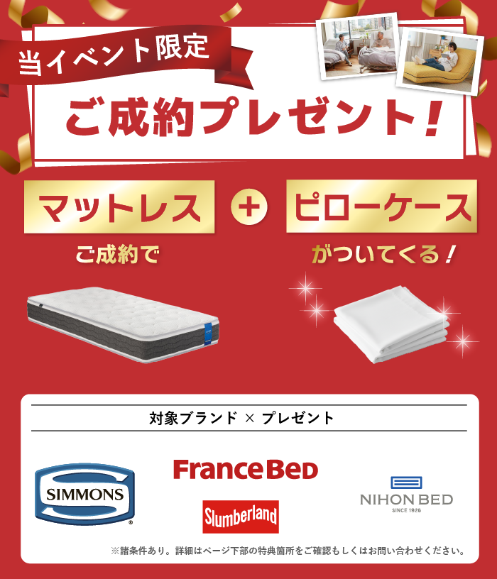 マットレスご成約で、「ピロー(枕)ケース」プレゼント!