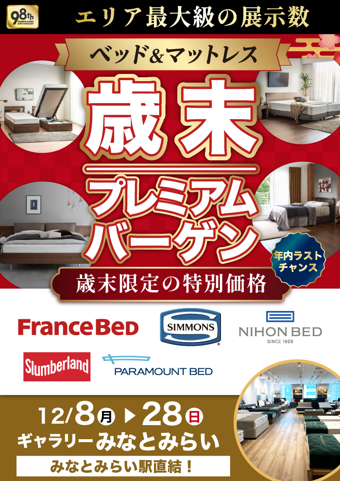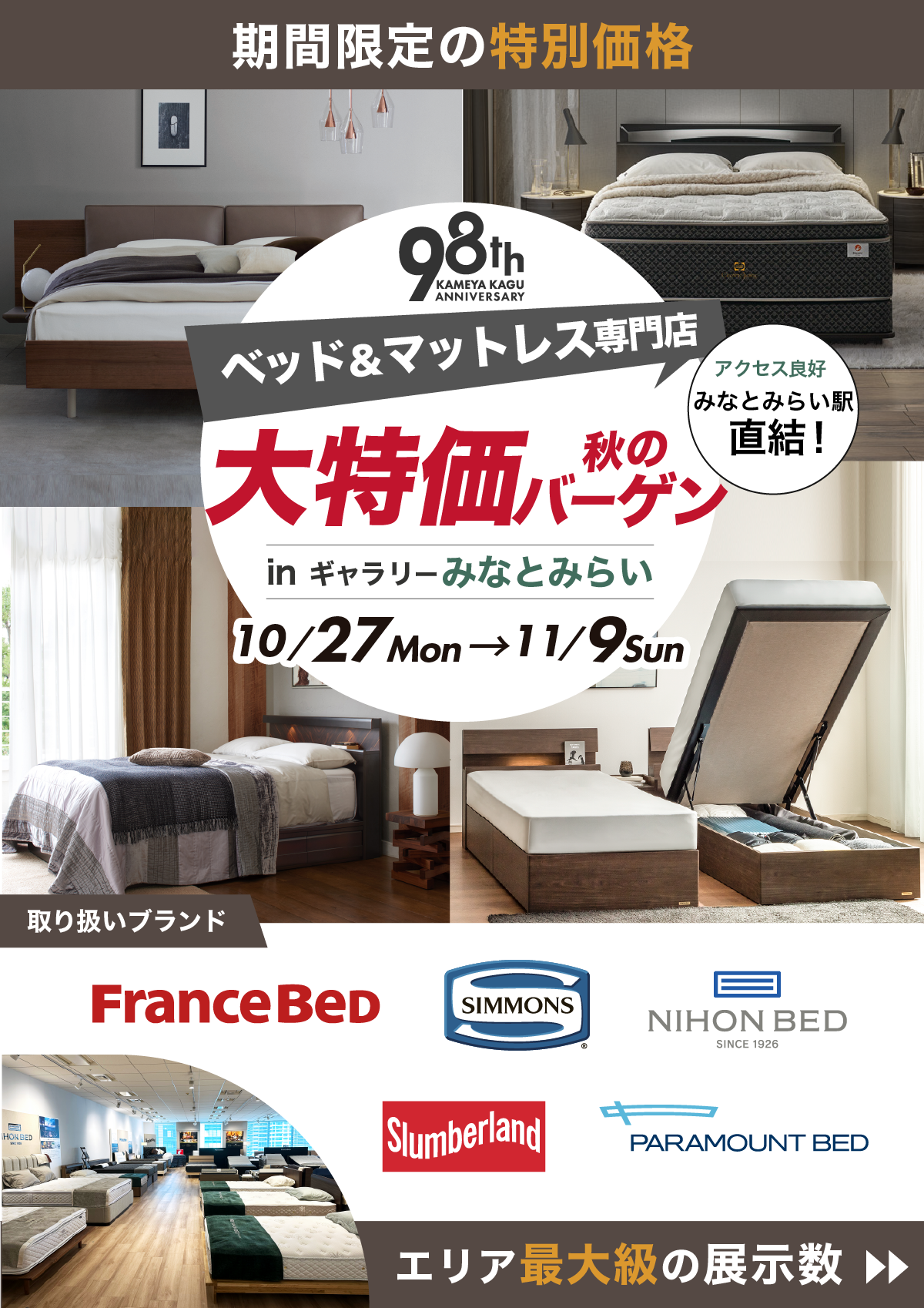 | 開催場所 | 亀屋家具 ギャラリーみなとみらい店(ブランドベッド専門店) |