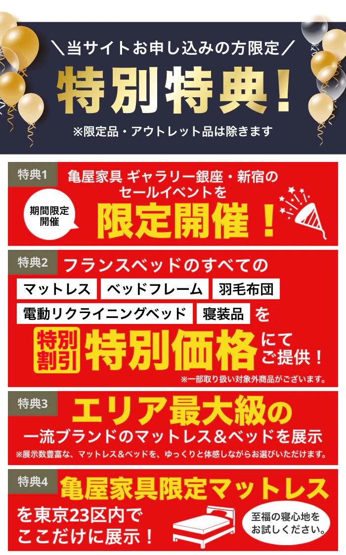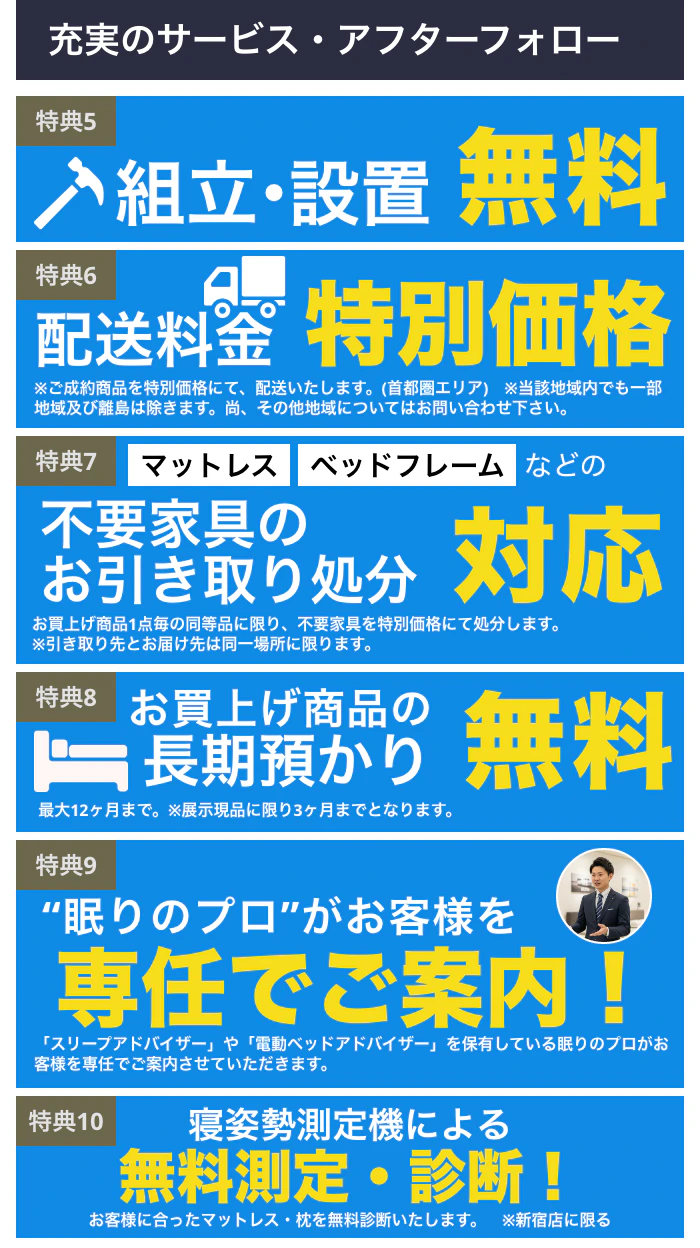 ※お買上げ商品1点毎の同等品に限り、不要家具を特別価格にて処分します。 ※引き取り先とお届け先は同一場所に限ります。 |