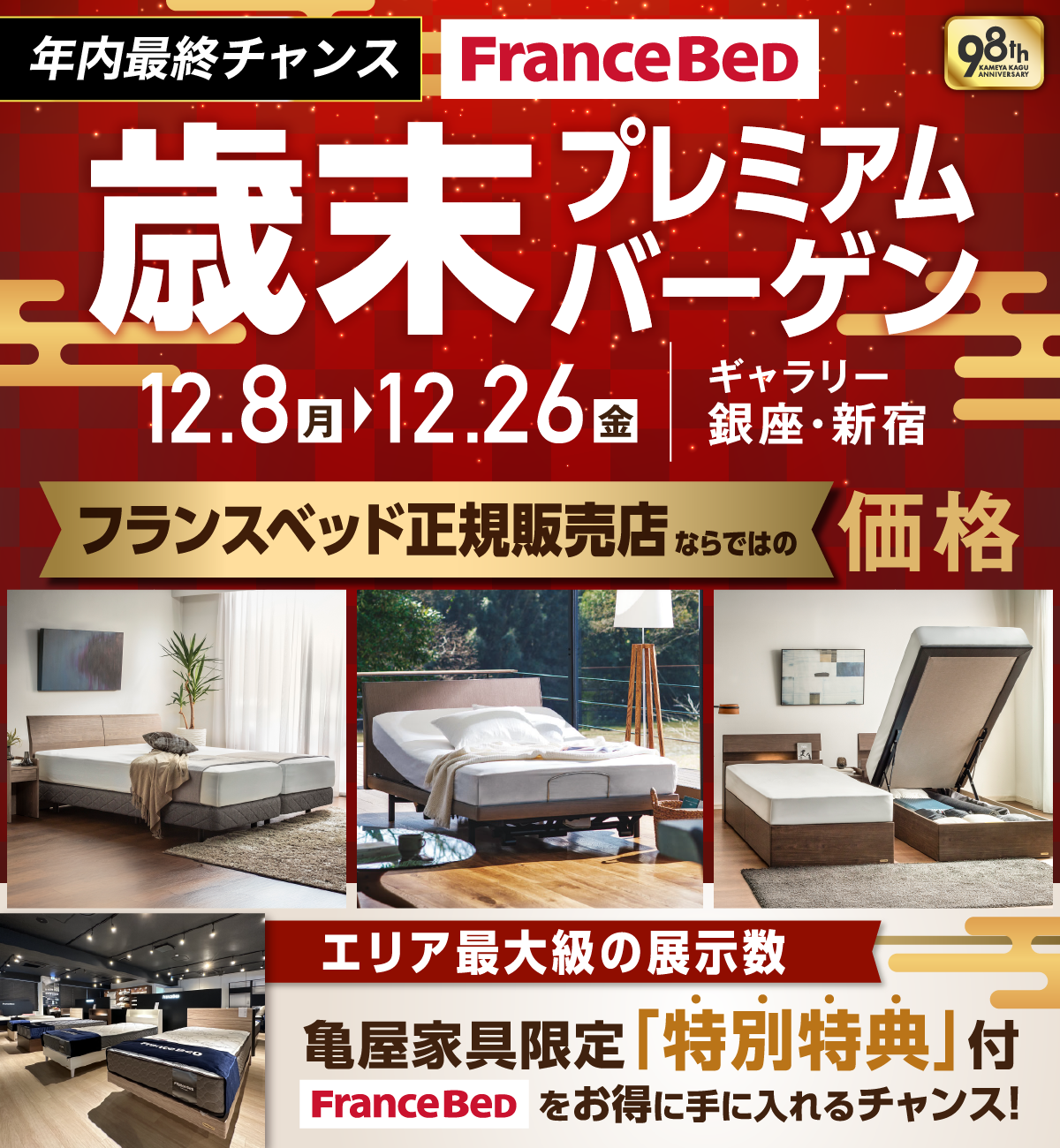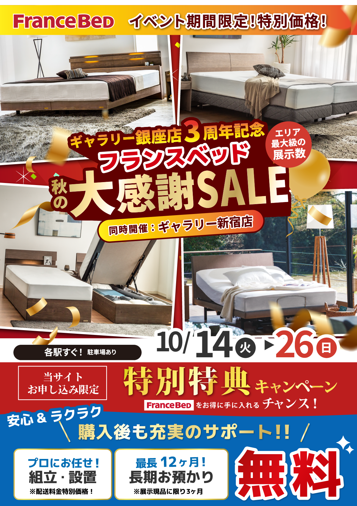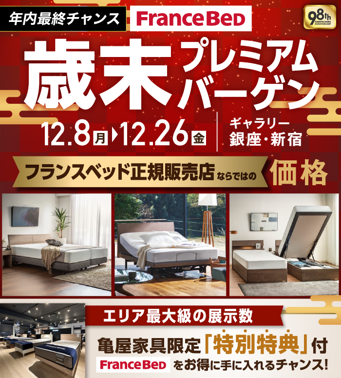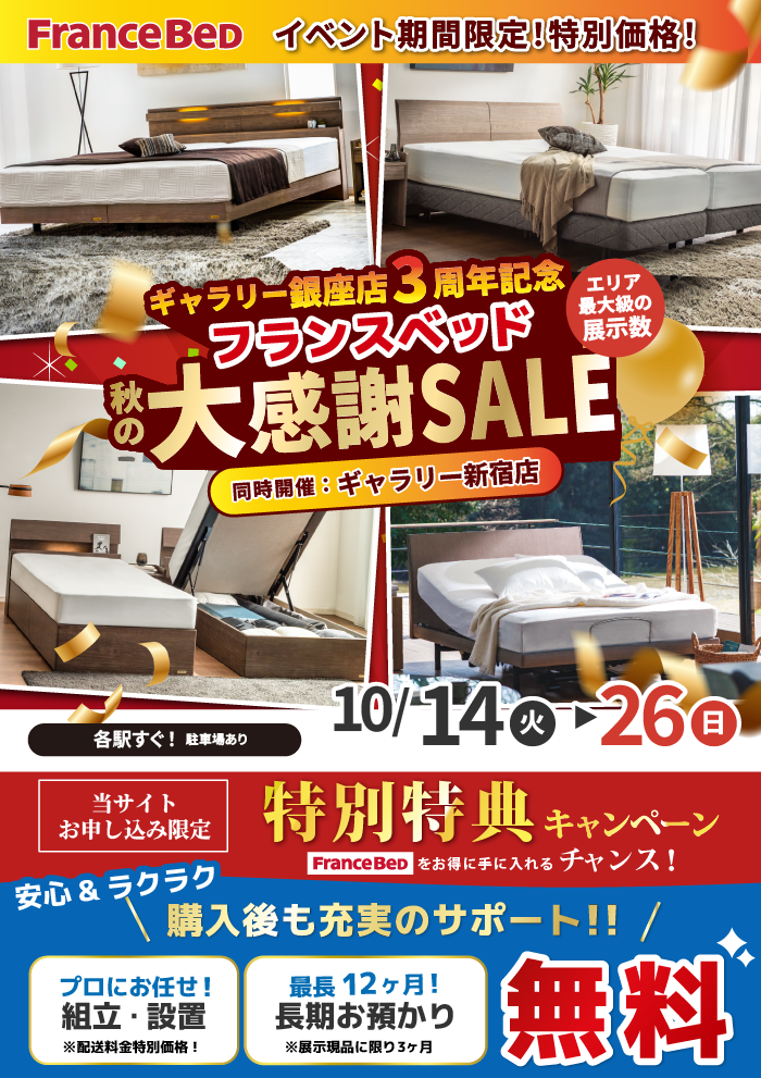 フランスベッドのすべてのマットレス・ベッドフレーム・電動リクライニングベッド・羽毛布団・寝装品を「特別価格」にてご提供!