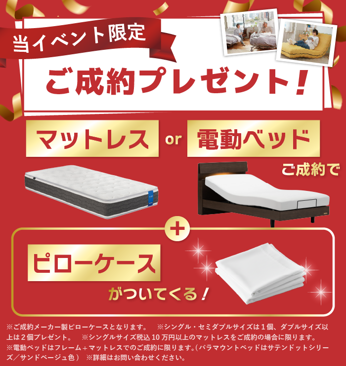 「フランスベッド・スランバーランド」のマットレスご成約で、「フランスベッド製 ピロー(枕)ケース」プレゼント!