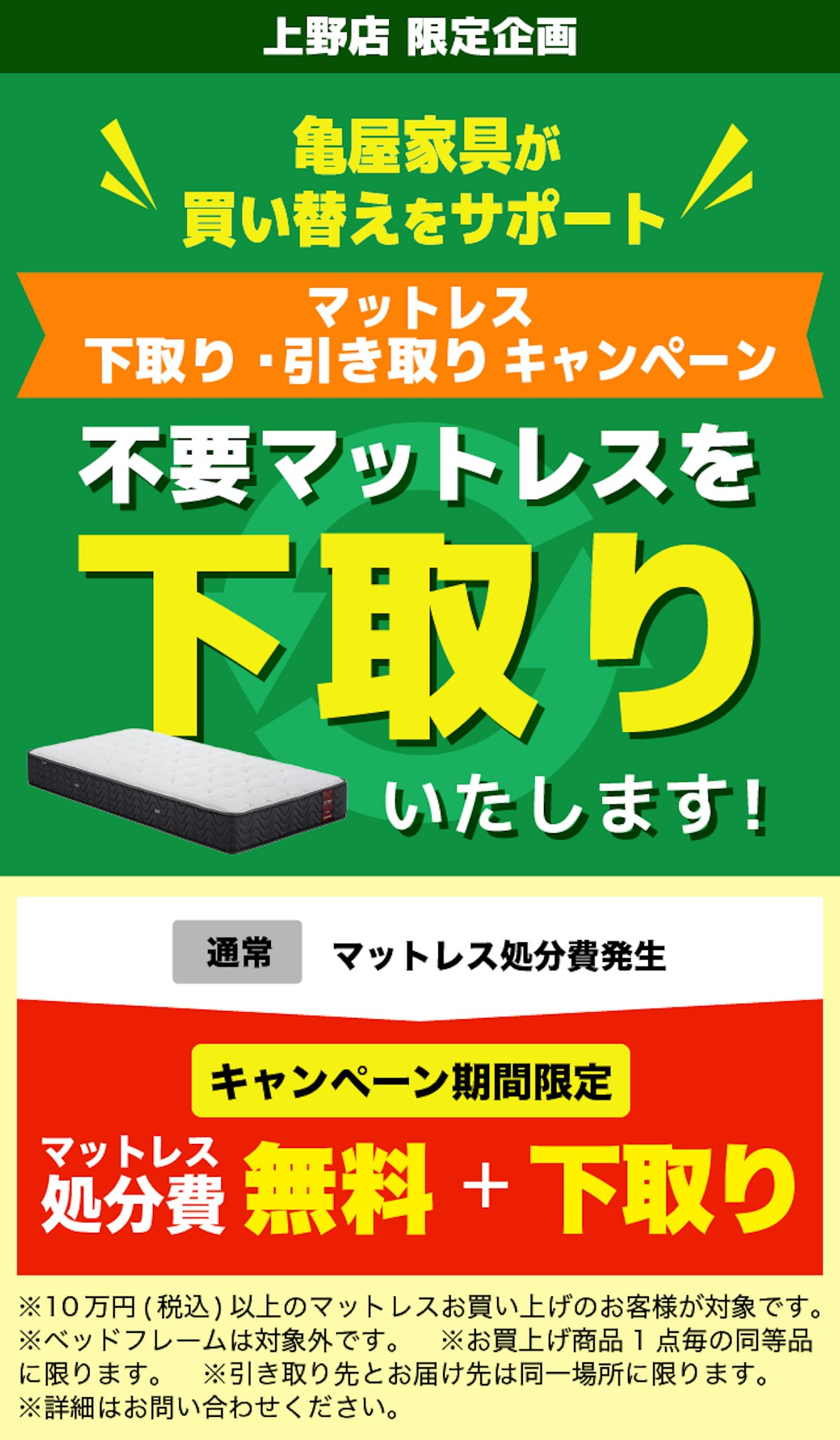 【上野店限定企画】マットレス下取り・引き取りキャンペーン