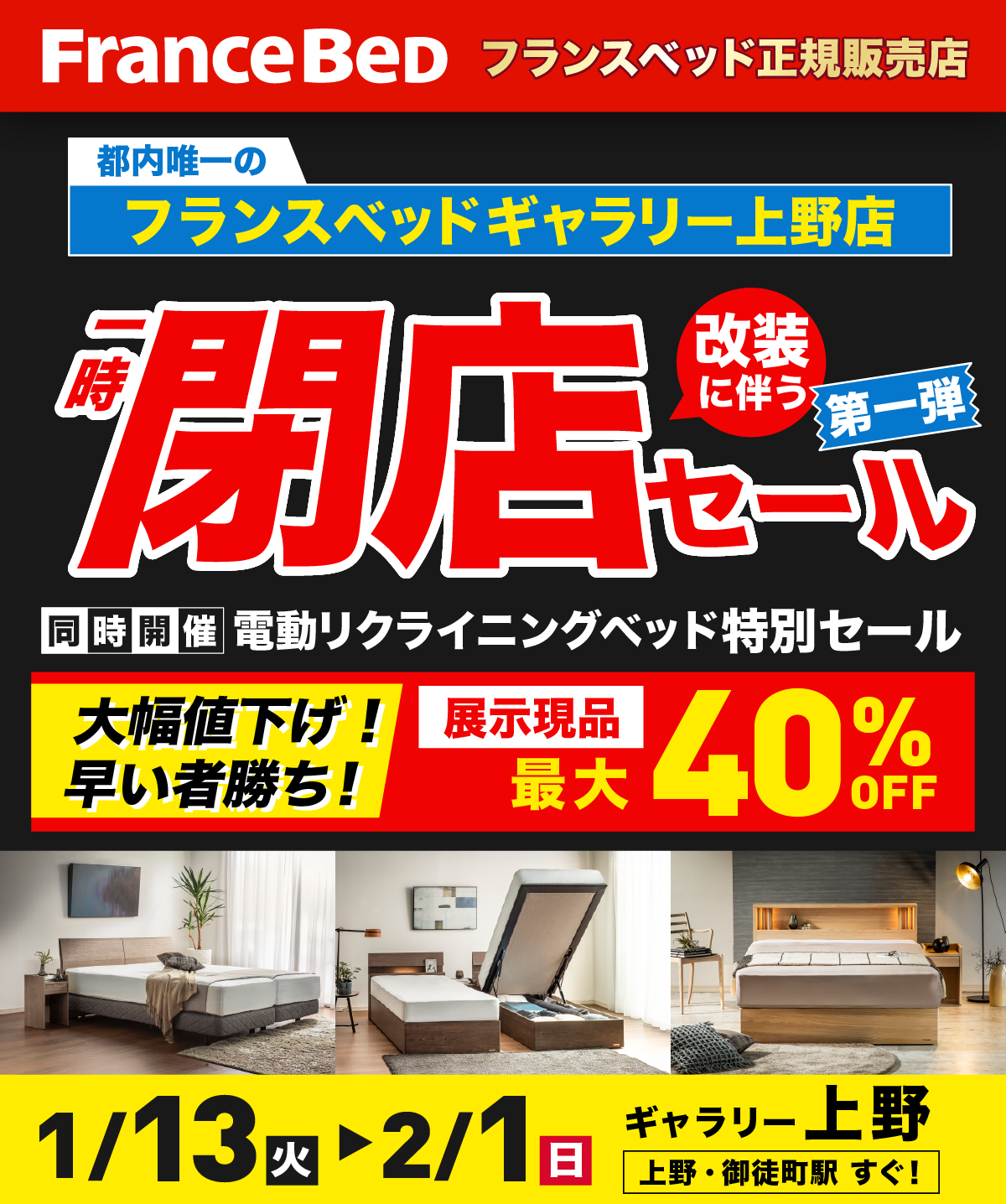 亀屋家具 ギャラリー上野店の一時閉店セールイベント