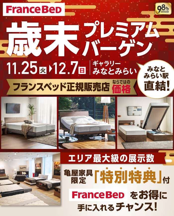 ※シングルサイズ税込10万円以上のフランスベッドマットレスをご成約の場合に限ります。