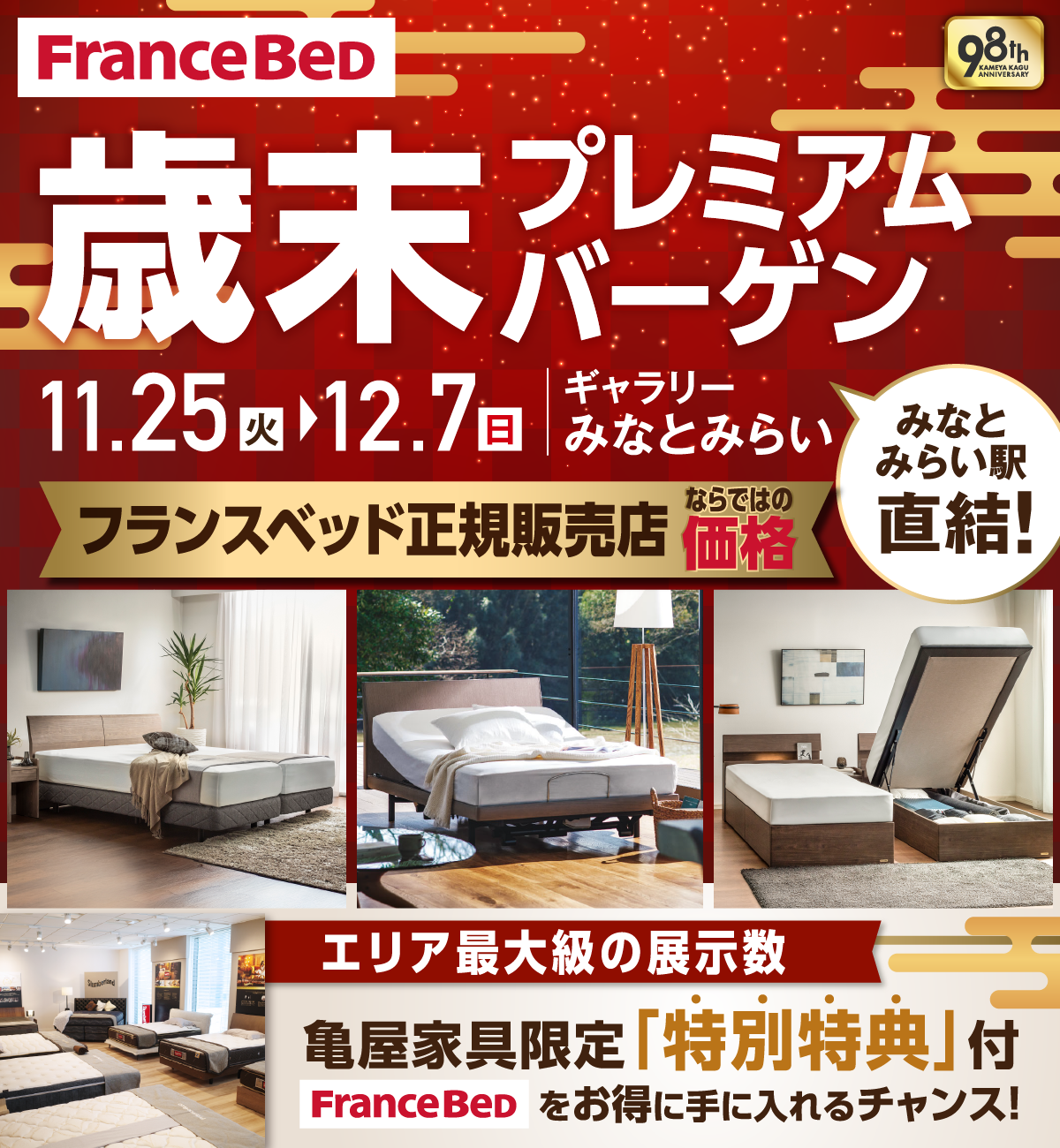 亀屋家具限定マットレスをみなとみらいエリアでここだけに展示!