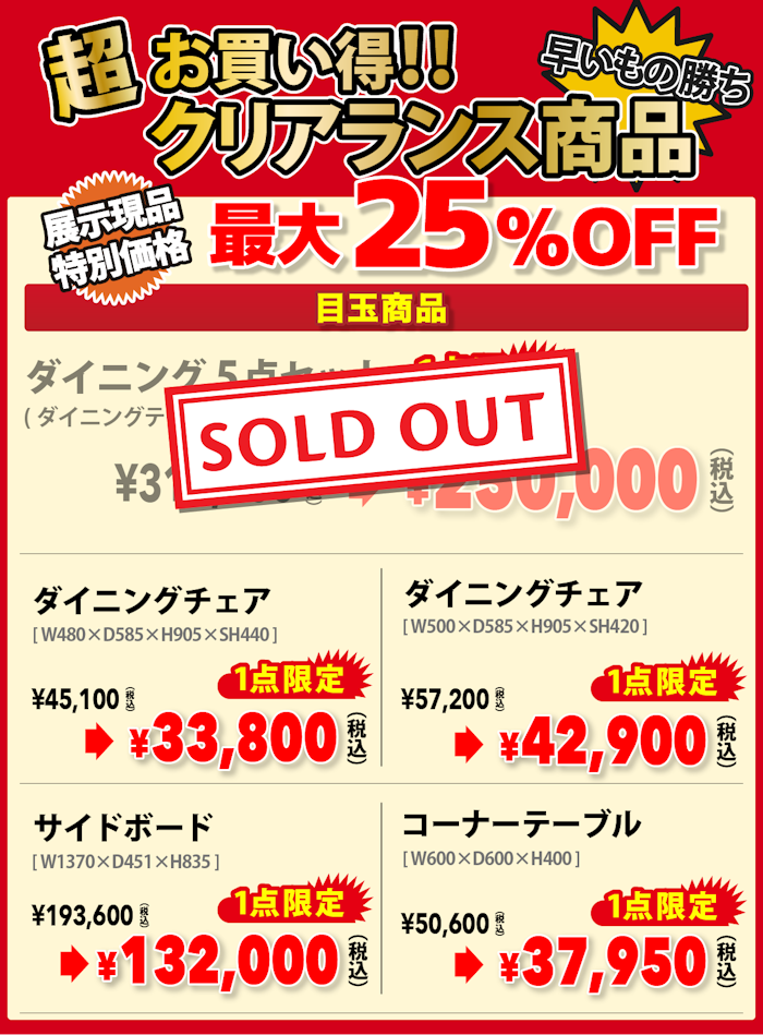 浜本工芸すべてのリビング・ダイニング・デスク関連の家具を「セールイベント限定特別価格」にてご提供!
