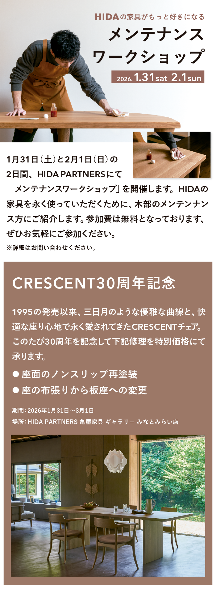 | 開催場所 | HIDA PARTNERS 亀屋家具 ギャラリー みなとみらい店(HIDA専門店) |