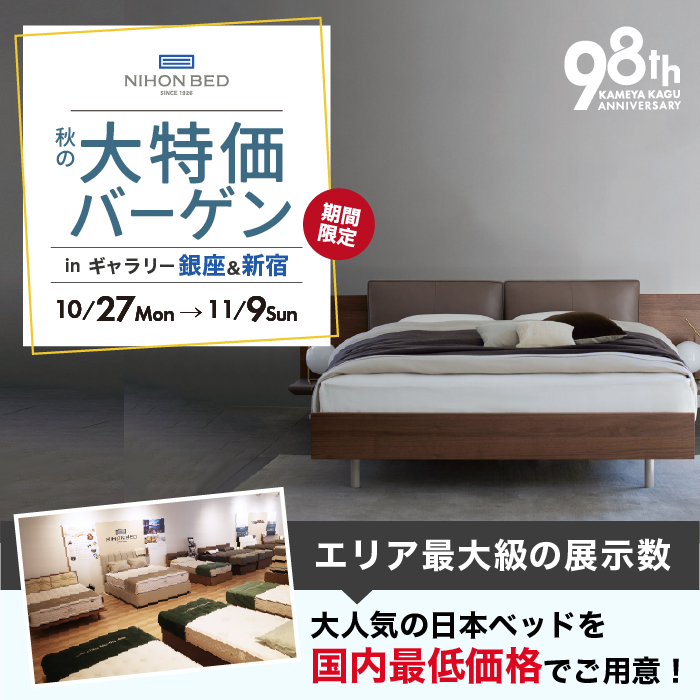 日本ベッドのすべてのマットレス・ベッドフレーム・羽毛布団・寝装品を「特別価格」にてご提供!