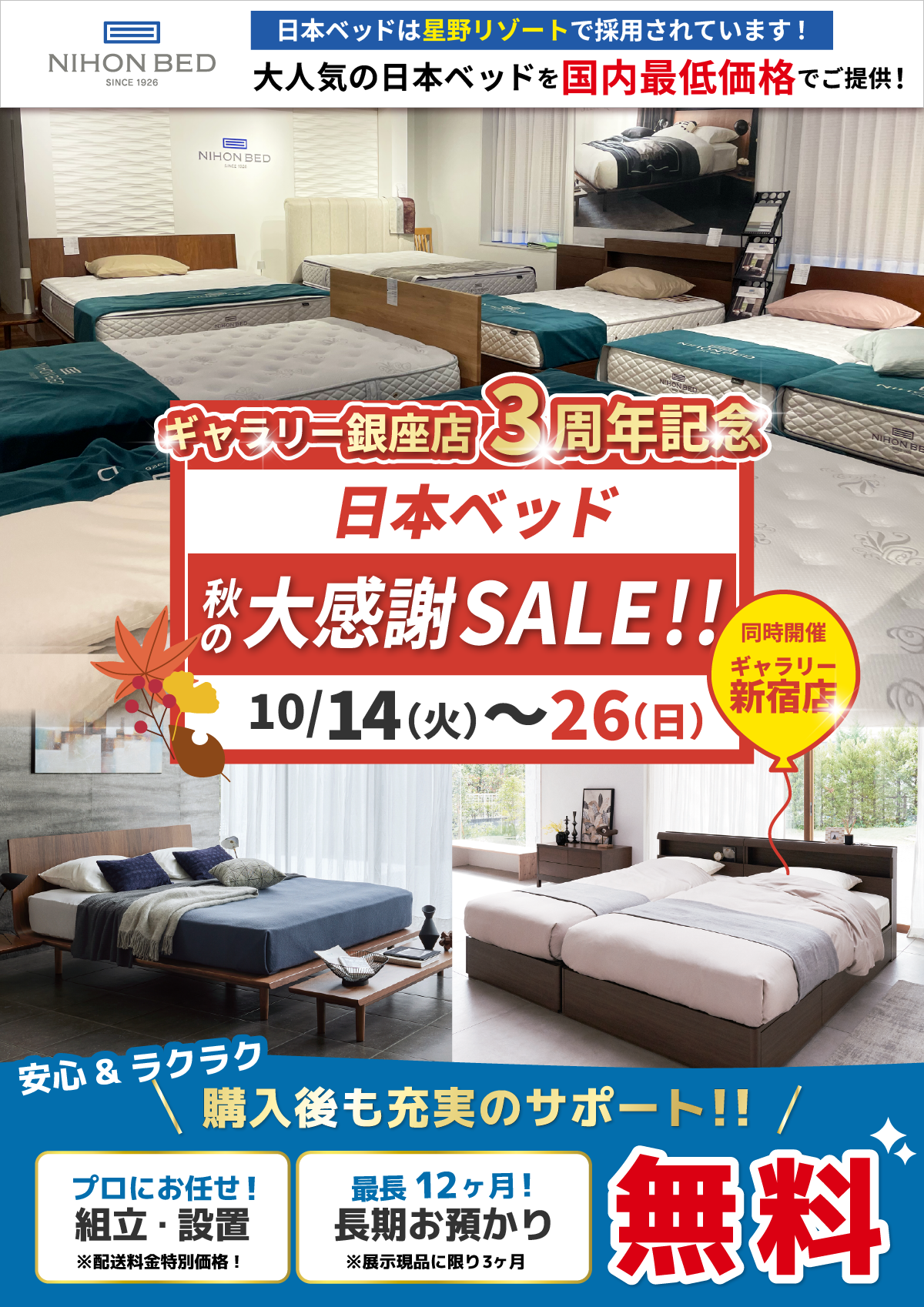 日本ベッドのすべてのマットレス・ベッドフレーム・羽毛布団・寝装品を「特別価格」にてご提供!