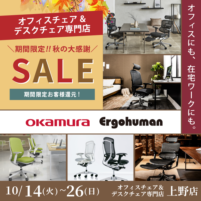オフィスチェア人気ブランド「エルゴヒューマン」「オカムラ」をイベント限定の特別価格にてご提供!