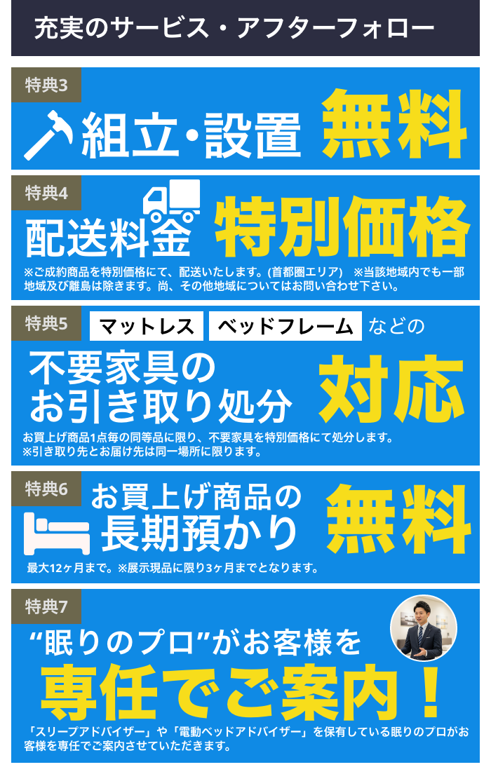 ※お買上げ商品1点毎の同等品に限り、不要家具を特別価格にて処分します。 ※引き取り先とお届け先は同一場所に限ります。 |