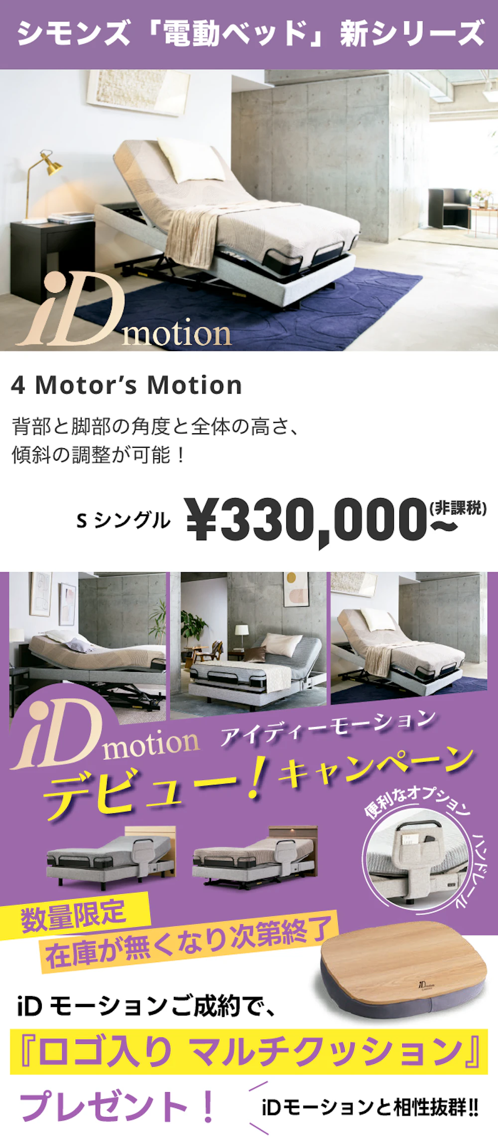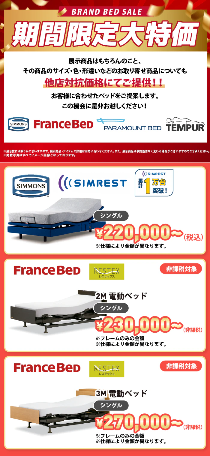 ※電動ベッドはフレーム+マットレスでのご成約に限ります。