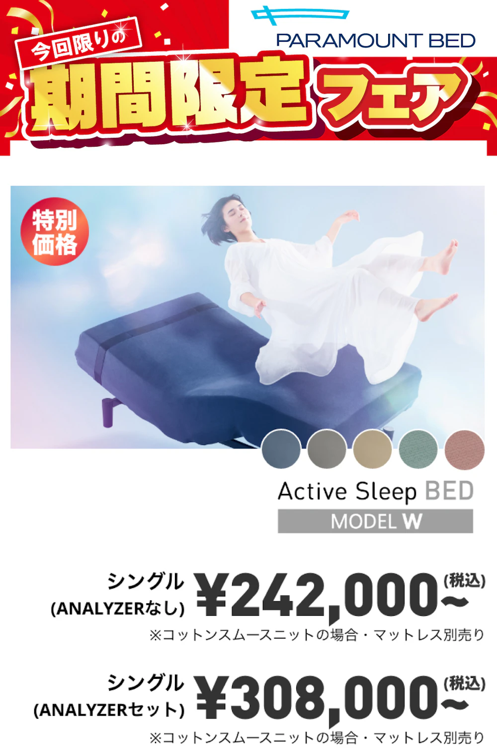 ※シングルサイズ税込10万円以上のマットレスをご成約の場合に限ります。