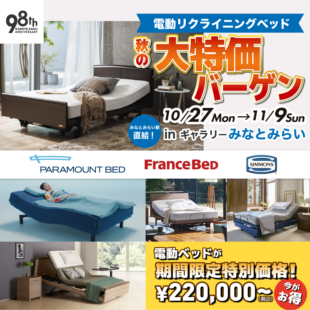 一流ベッドブランドのすべての電動リクライニングベッド・羽毛布団・寝装品を「限定特別価格」にてご提供!