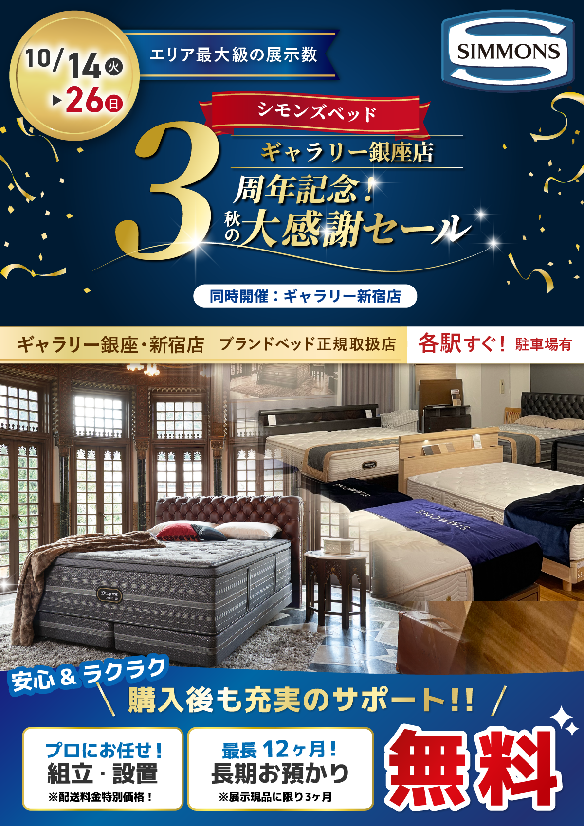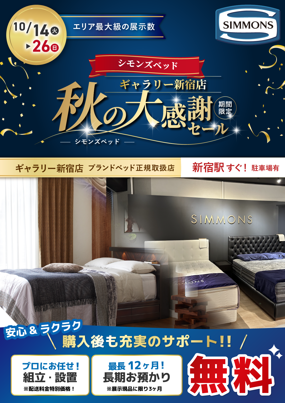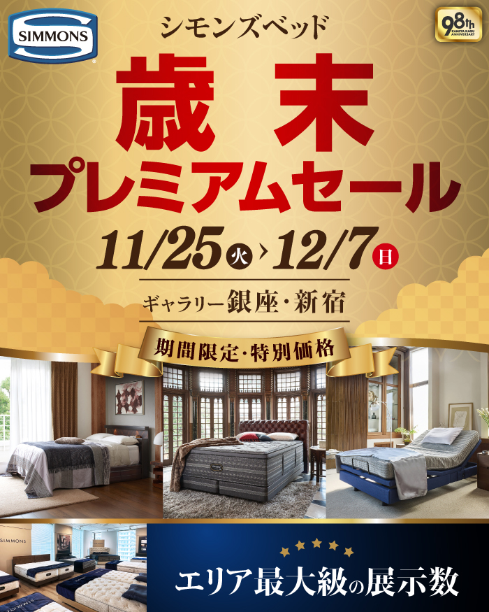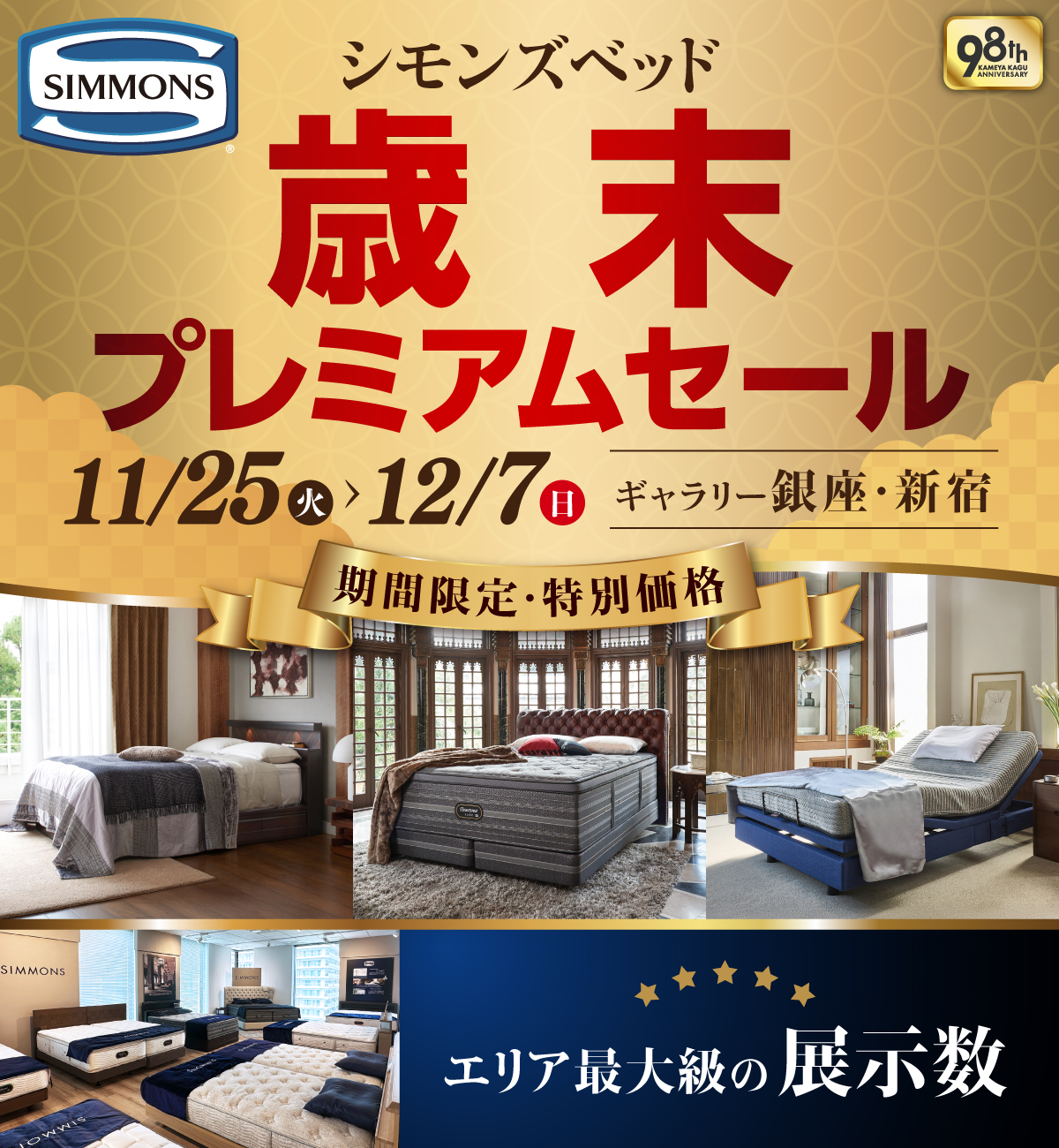 シモンズのすべてのマットレス・ベッドフレーム・電動リクライニングベッド・羽毛布団・寝装品を「特別価格」にてご提供!