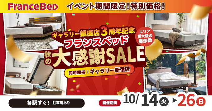 ギャラリー銀座店 3周年記念! フランスベッド 期間限定 秋の大感謝セール <【同時開催】ギャラリー新宿店>(10月14~26日)_GAFB