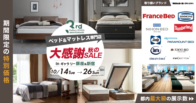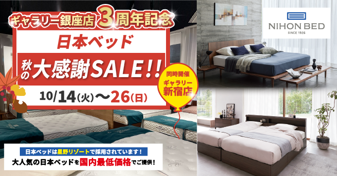 ギャラリー銀座店 3周年記念! 日本ベッド 期間限定 秋の大感謝セール <【同時開催】ギャラリー新宿店>(10月14~26日)_GANB