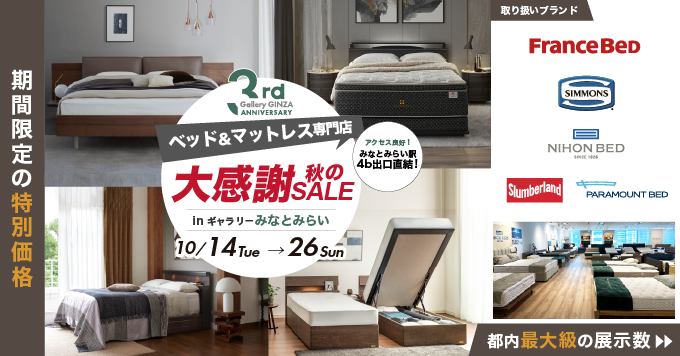 日本ベッド 期間限定 秋の大感謝セール <ギャラリーみなとみらい店>(10月14~26日)_GMMNB