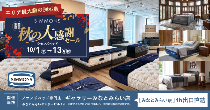 シモンズベッド 期間限定 秋の大感謝セール <ギャラリーみなとみらい店>(10月1~13日)_GMMSZ