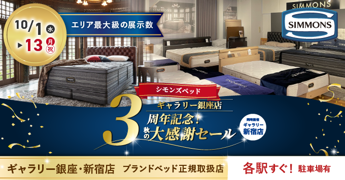 ギャラリー銀座店 3周年記念! シモンズベッド 期間限定 秋の大感謝セール <【同時開催】ギャラリー新宿店>(10月1~13日)_GASZ