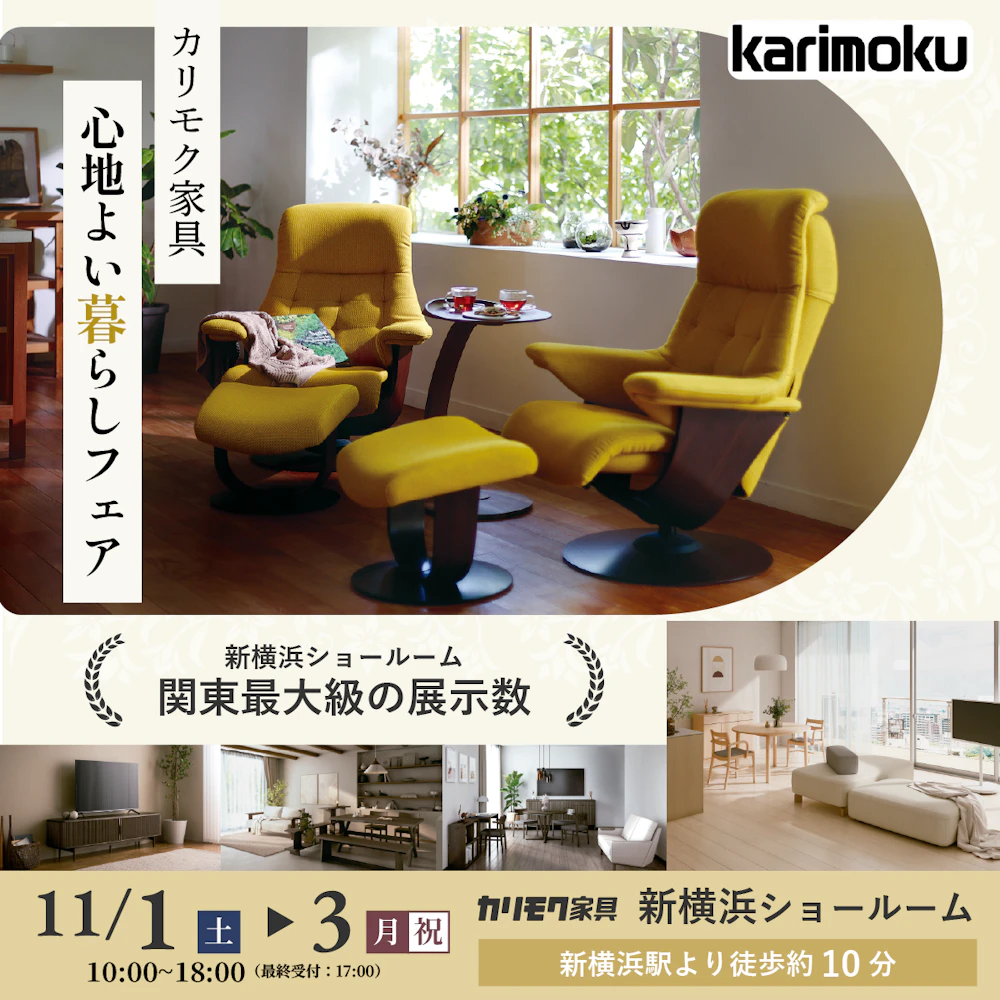 神奈川県横浜市港北区にある「カリモク家具 新横浜ショールーム」にて、『カリモク家具 心地よい暮らしフェア』を期間限定で開催致します。