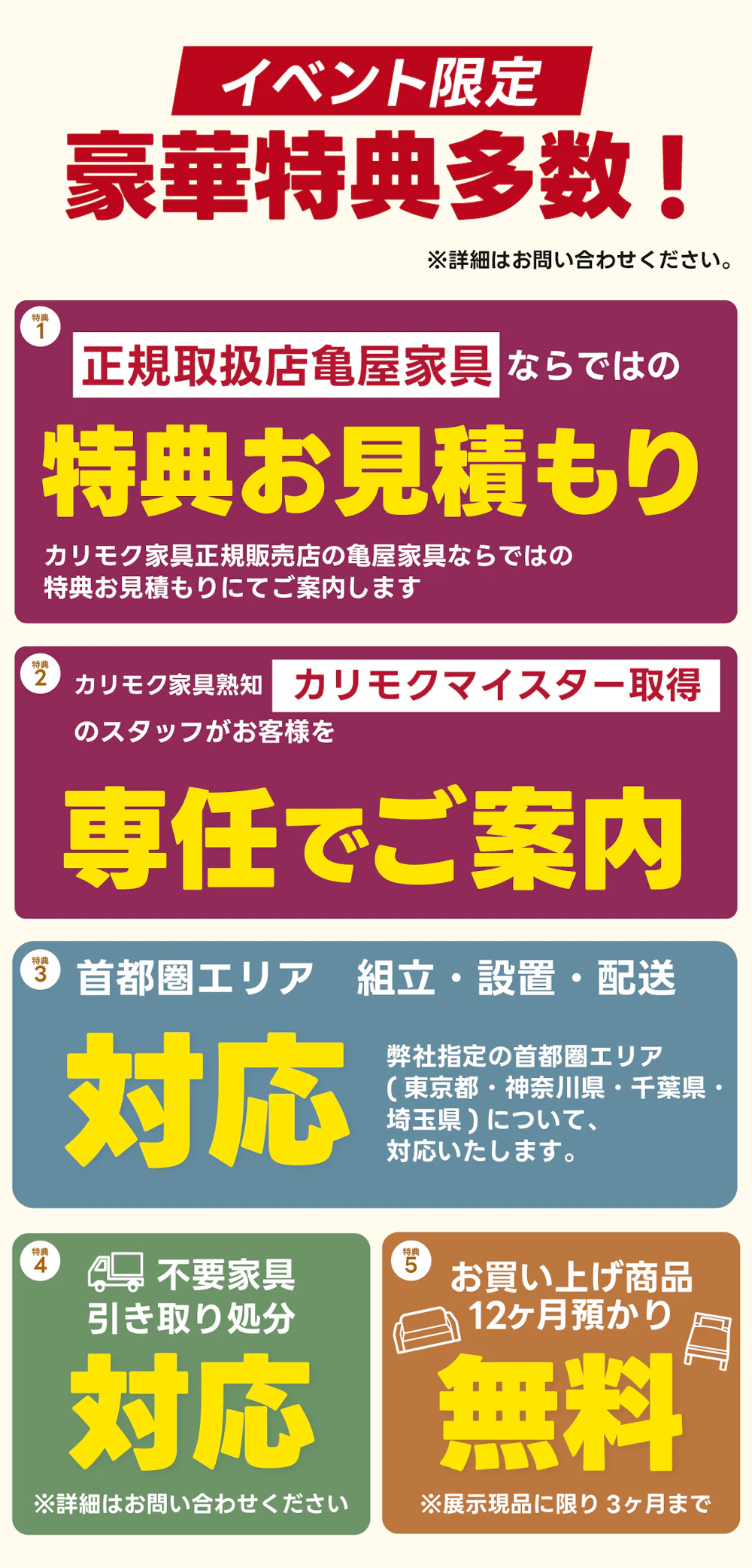カリモク家具正規販売店の亀屋家具ならではの特典お見積もりにてご案内致します!