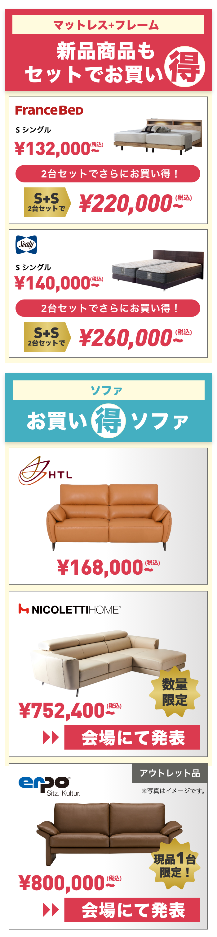 | 取扱商品 | ベッド・マットレス 家具全般 布団・寝装品 |