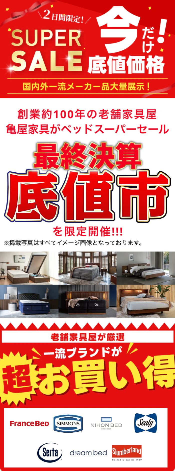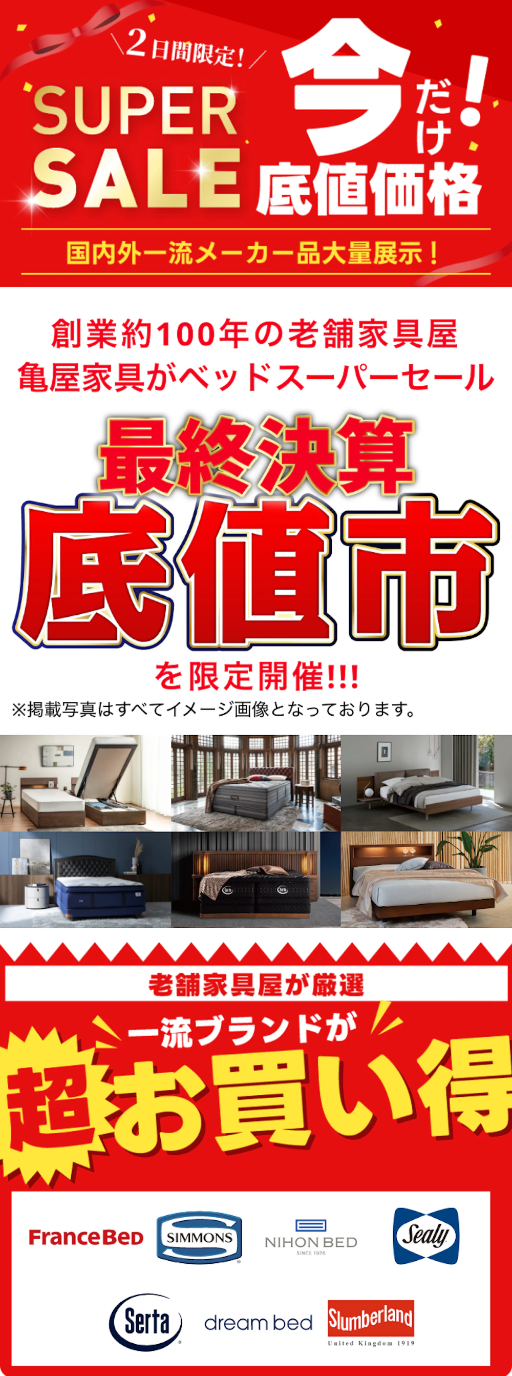| 取扱商品 | 家具全般 ベッドフレーム・マットレス・寝装品 電動ベッド |